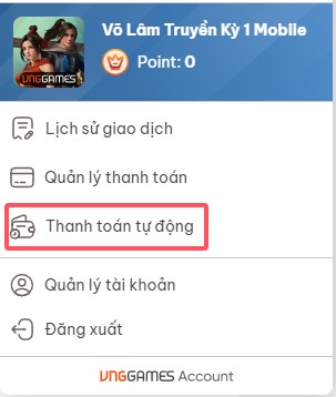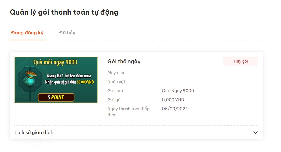 - Để Hủy Thanh Toán Tự Động, Đại hiệp có thể vào phần Thanh Toán Tự Động và chọn Hủy Gói