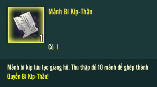- Khi mua đủ 200 hộp quà, người chơi sẽ nhận được thêm phần thưởng là 1 Mảnh Bí Kíp-Thần.